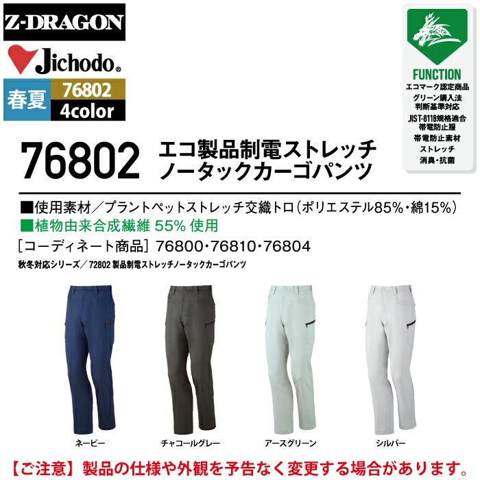 自重堂 作業服 作業着 作業ズボン 自重堂 作業服 76802 ストレッチノータックカーゴパンツ 91-106 春夏用 作業着