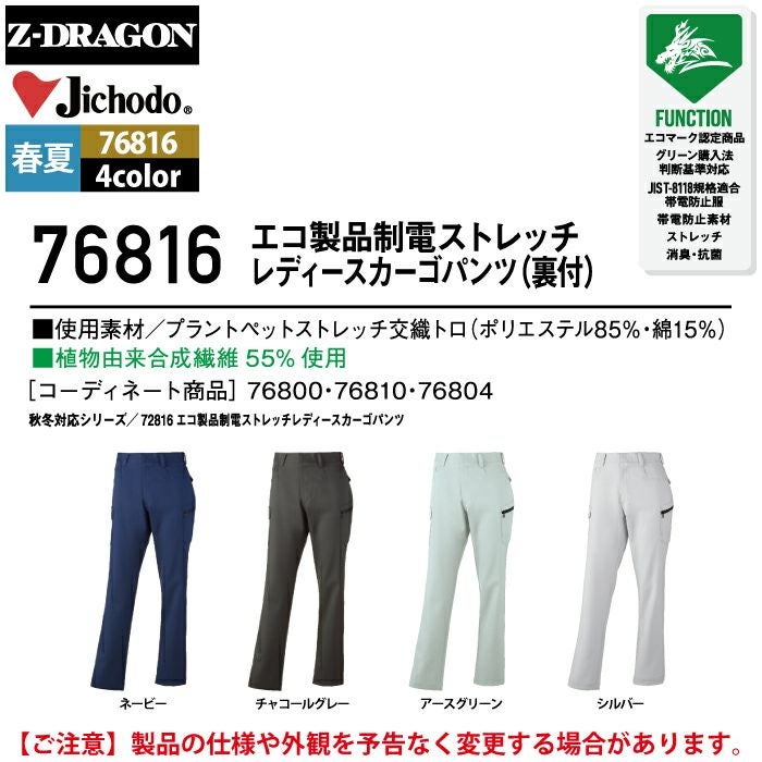 自重堂 作業服 作業着 作業ズボン 自重堂 作業服 76816 ストレッチレディースカーゴパンツ 59-76 春夏用 作業着