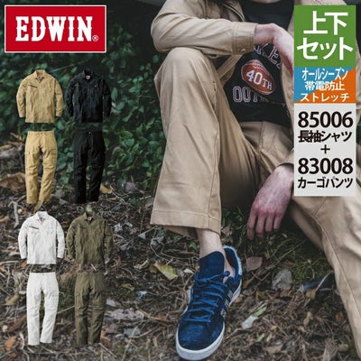 作業服 オールシーズン エドウイン EDWIN 上下セット 85006 長袖シャツS-3L と 83008 カーゴパンツ 70-100 作業着 作業ズボン