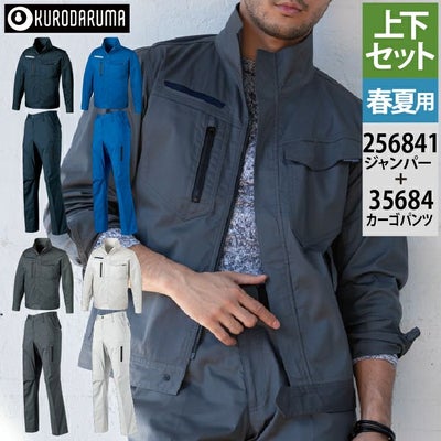 クロダルマ 作業服 上下セット 256841 長袖ジャンパーS-3L と 35684 カーゴパンツ(ノータック) SS-3L 作業着 作業ズボン 春夏用