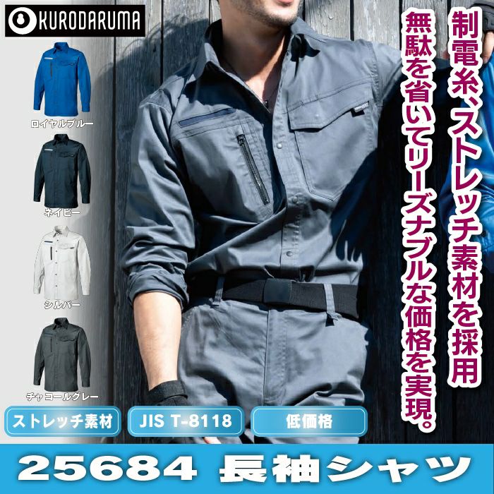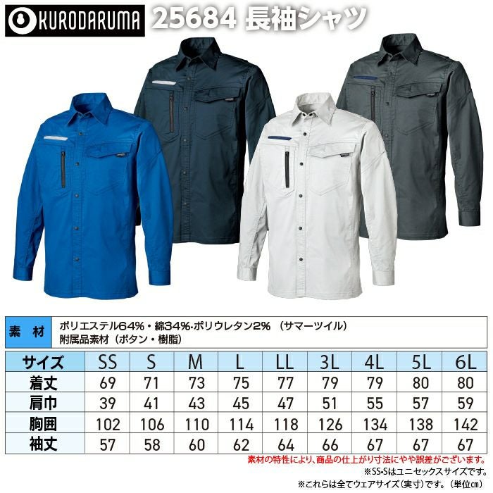 作業服 作業着 クロダルマ 作業服 25684 長袖シャツ SS-LL 春夏用