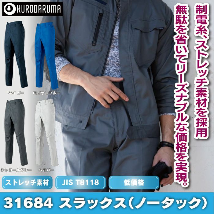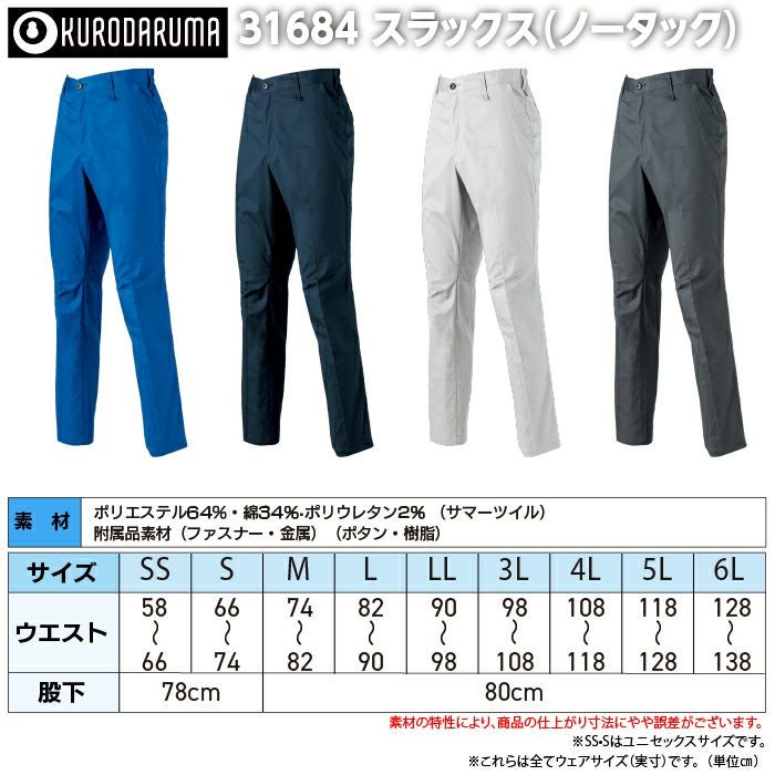 作業服 作業着 作業ズボン クロダルマ 作業服 作業ズボン 31684 スラックス(ノータック) 6L 春夏用