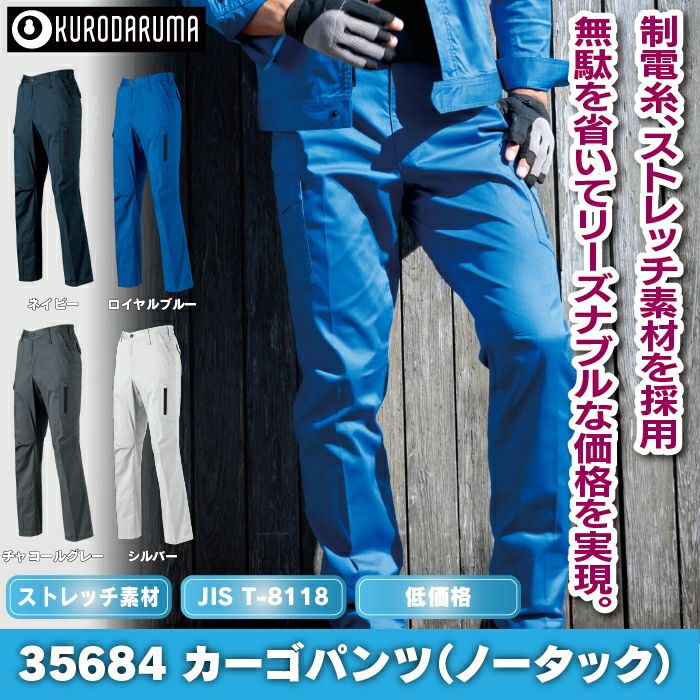 作業服 作業着 作業ズボン クロダルマ 作業服 作業ズボン 35684 カーゴパンツ(ノータック) SS-LL 春夏用