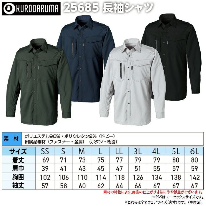 作業服 作業着 クロダルマ 作業服 25685 長袖シャツ SS-LL 春夏用