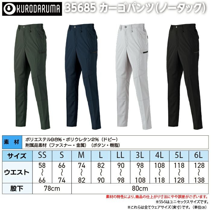 作業服 作業着 作業ズボン クロダルマ 作業服 作業ズボン 35685 カーゴパンツ(ノータック) SS-LL 春夏用
