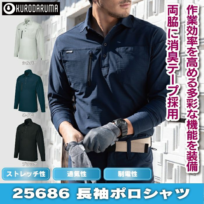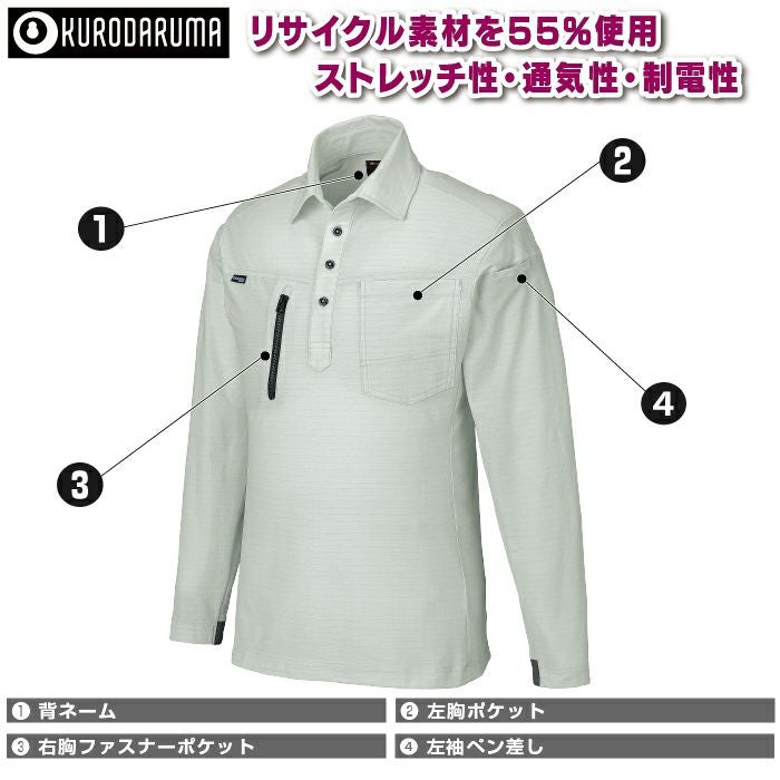 作業服 作業着 クロダルマ 作業服 インナー 25686 長袖ポロシャツ SS-LL 春夏用