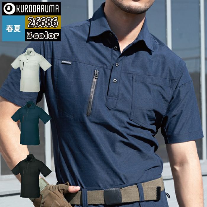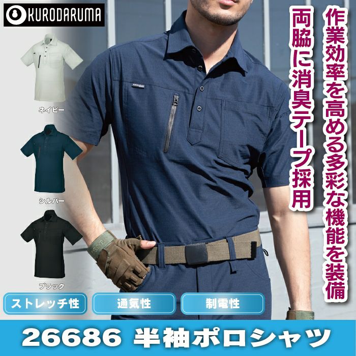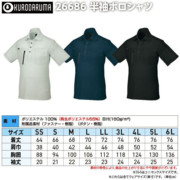 作業服 作業着 クロダルマ 作業服 インナー 26686 半袖ポロシャツ SS-LL 春夏用