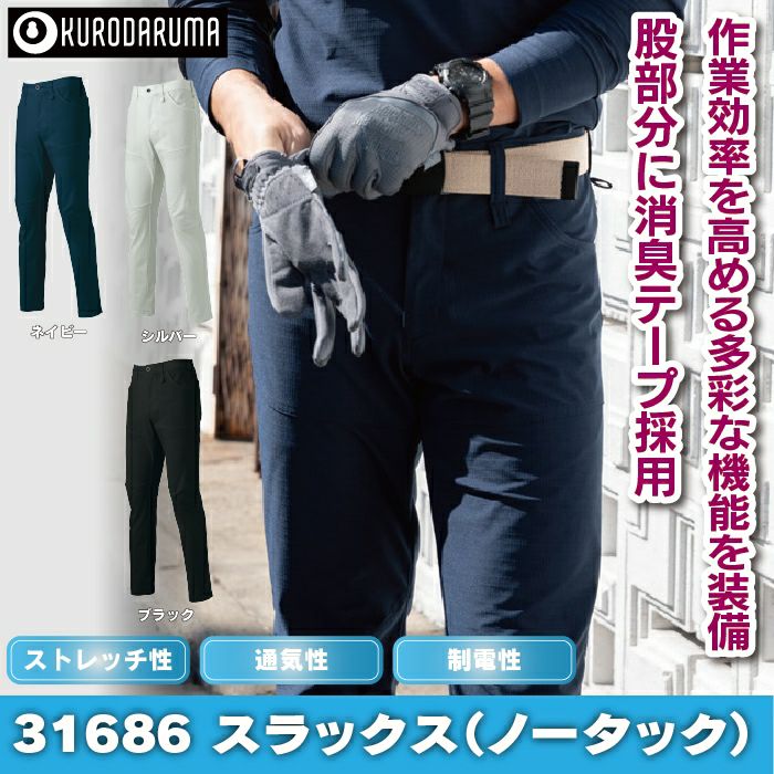 作業服 作業着 作業ズボン クロダルマ 作業服 作業ズボン 31686 スラックス(ノータック) 3L-5L 春夏用