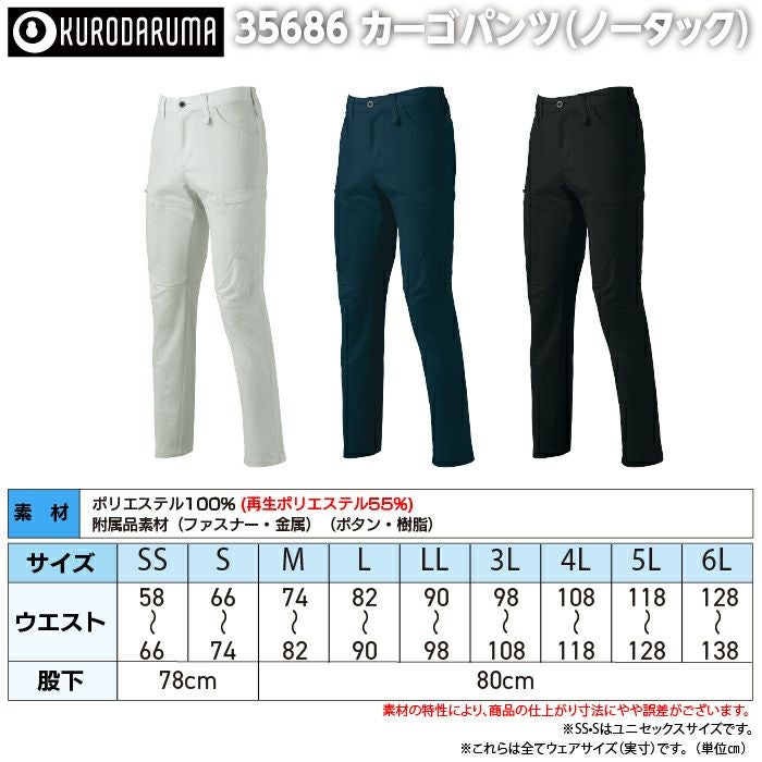 作業服 作業着 作業ズボン クロダルマ 作業服 作業ズボン 35686 カーゴパンツ(ノータック) 6L 春夏用