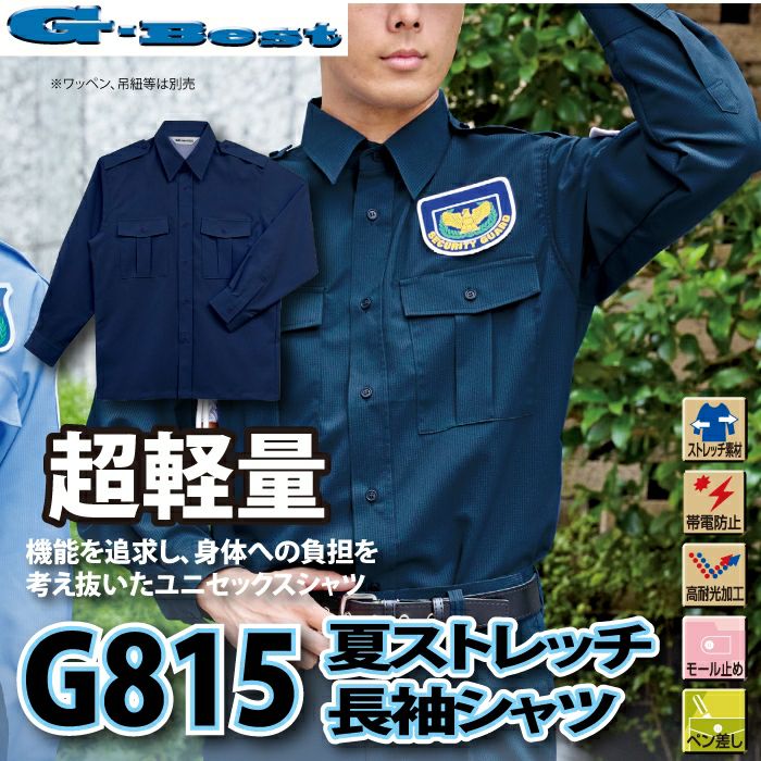 警備服 警備員 警備用 防犯 警備服・防犯商品 春夏用 G-best G815 夏ストレッチ長袖シャツ SS-6L ワッペンや吊紐は付属なし