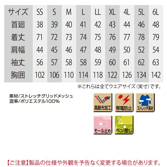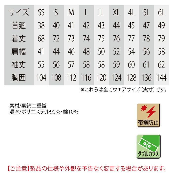作業服 春夏用 アイトス Aitoz AZ-1932 半袖ブルゾン(男女兼用) 3L