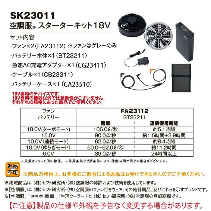 株式会社空調服製 空調服 G-best SK23011 空調服スターターキット18V F 作業着 春夏用 熱中症 レジャー アウトドア スポーツ