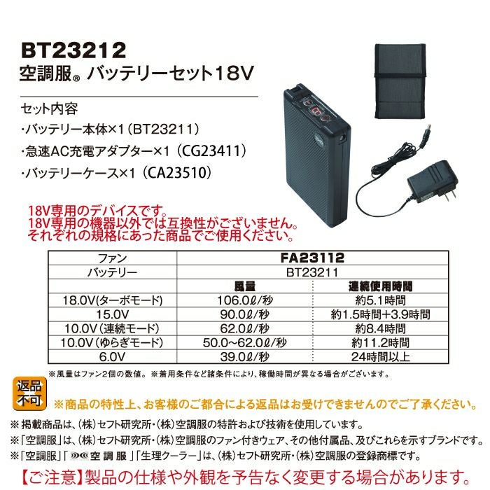 株式会社空調服製 空調服 G-best BT23212 空調服バッテリーセット18V F 作業着 春夏用 熱中症 レジャー アウトドア スポーツ