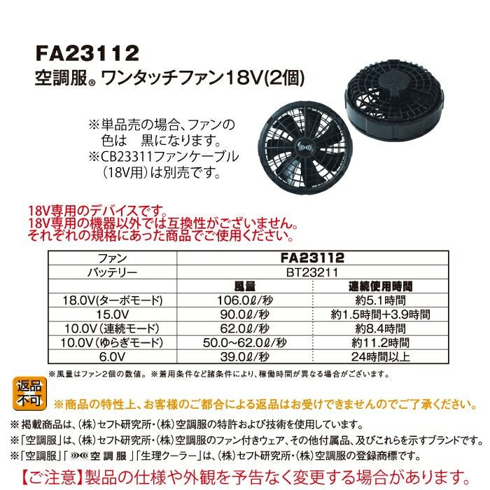 株式会社空調服製 空調服 G-best FA23112 空調服ワンタッチファン18V(2個) F 作業着 春夏用 熱中症 レジャー アウトドア スポーツ