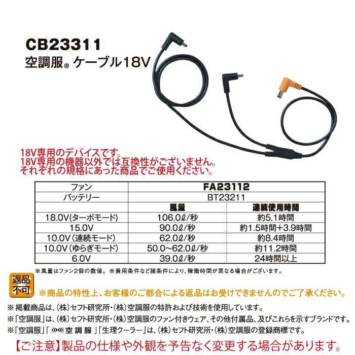 株式会社空調服製 空調服 G-best CB23311 空調服ケーブル18V F 作業着 春夏用 熱中症 レジャー アウトドア スポーツ
