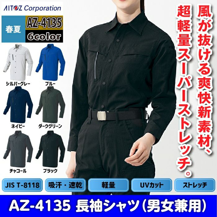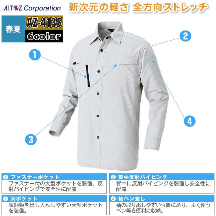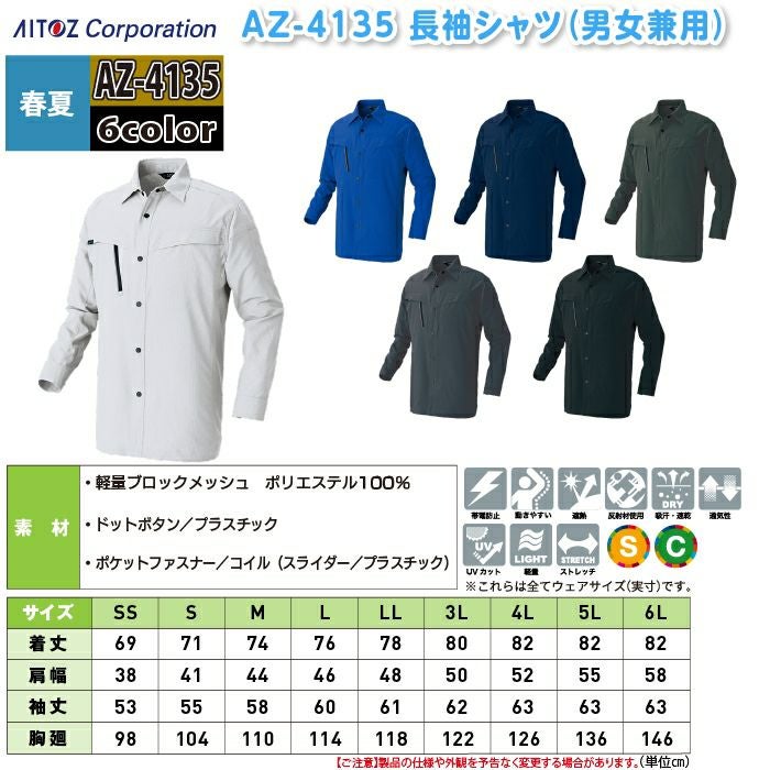 アイトス Aitoz 作業服 作業着 作業ズボン アイトス 作業服 作業着 Aitoz 春夏用 Aitoz AZ-4135 長袖シャツ(男女兼用) SS-LL