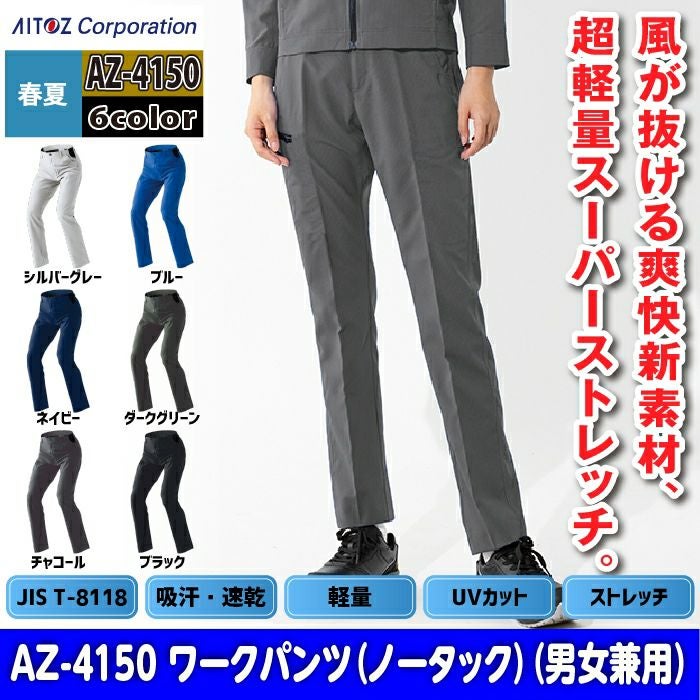 アイトス Aitoz 作業服 作業着 作業ズボン アイトス 作業服 作業着 Aitoz 春夏用 Aitoz AZ-4150 ワークパンツ(ノータック)(男女兼用) 3S-LL