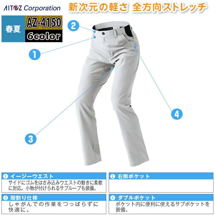 アイトス Aitoz 作業服 作業着 作業ズボン アイトス 作業服 作業着 Aitoz 春夏用 Aitoz AZ-4150 ワークパンツ(ノータック)(男女兼用) 3L-4L