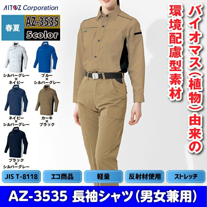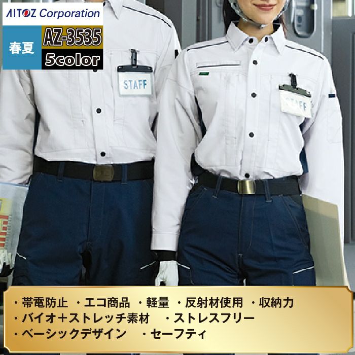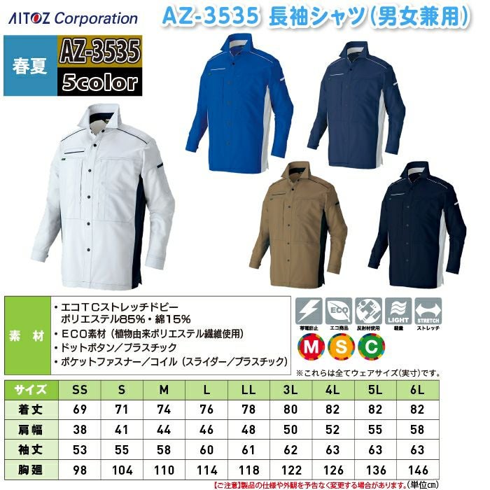 アイトス Aitoz 作業服 作業着 作業ズボン アイトス 作業服 作業着 Aitoz 春夏用 Aitoz AZ-3535 長袖シャツ(男女兼用) SS-LL