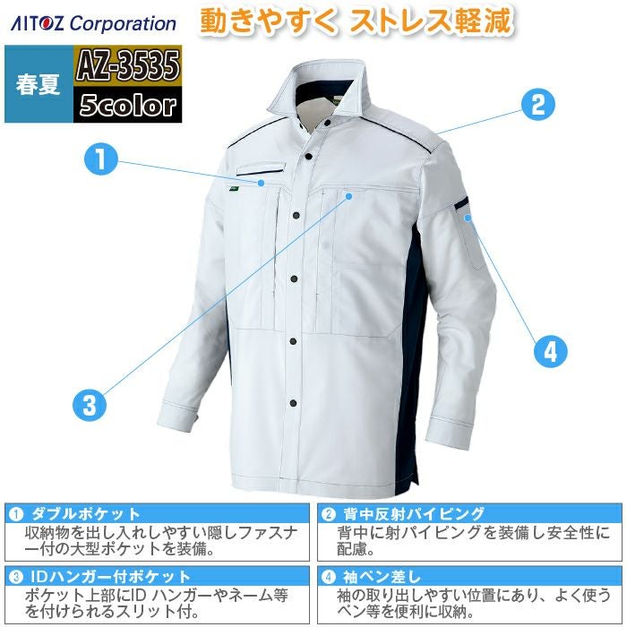 アイトス Aitoz 作業服 作業着 作業ズボン アイトス 作業服 作業着 Aitoz 春夏用 Aitoz AZ-3535 長袖シャツ(男女兼用) 5L