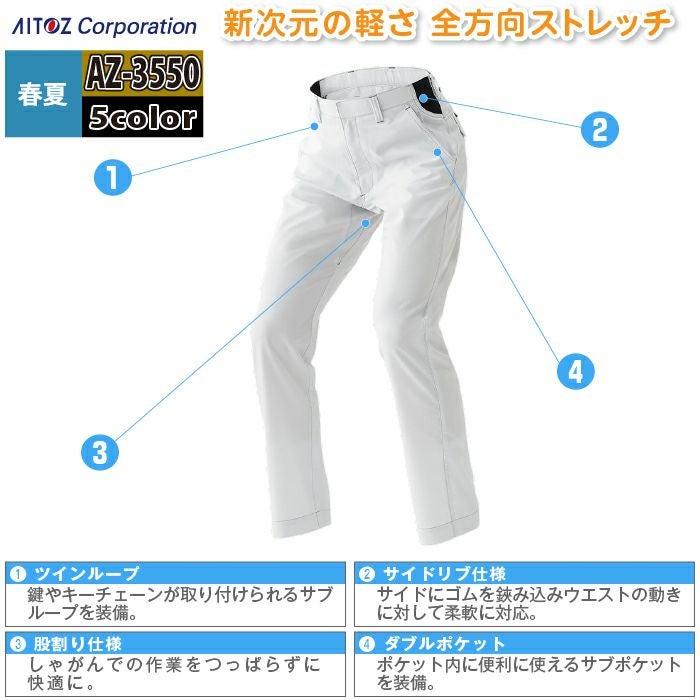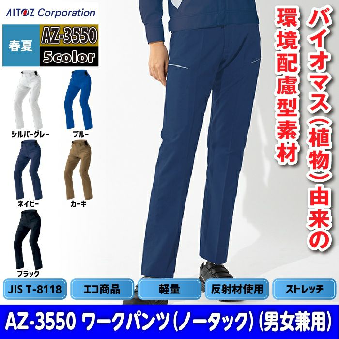 アイトス Aitoz 作業服 作業着 作業ズボン アイトス 作業服 作業着 Aitoz 春夏用 Aitoz AZ-3550 ワークパンツ(ノータック)(男女兼用) 3S-LL