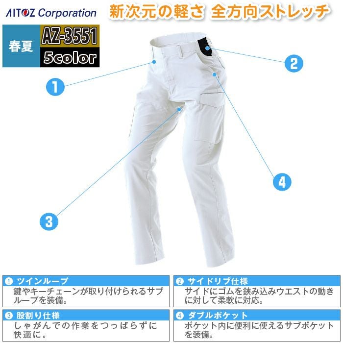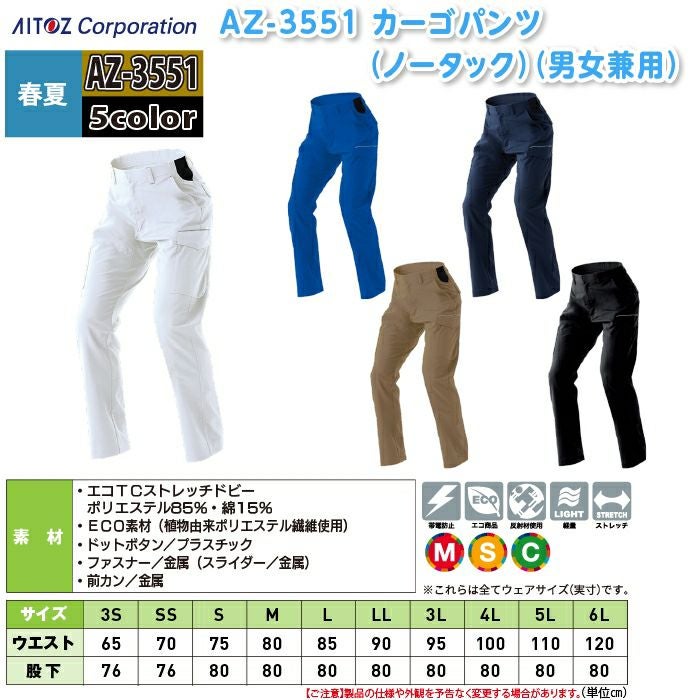 アイトス Aitoz 作業服 作業着 作業ズボン アイトス 作業服 作業着 Aitoz 春夏用 Aitoz AZ-3551 カーゴパンツ(ノータック)(男女兼用) 3S-LL