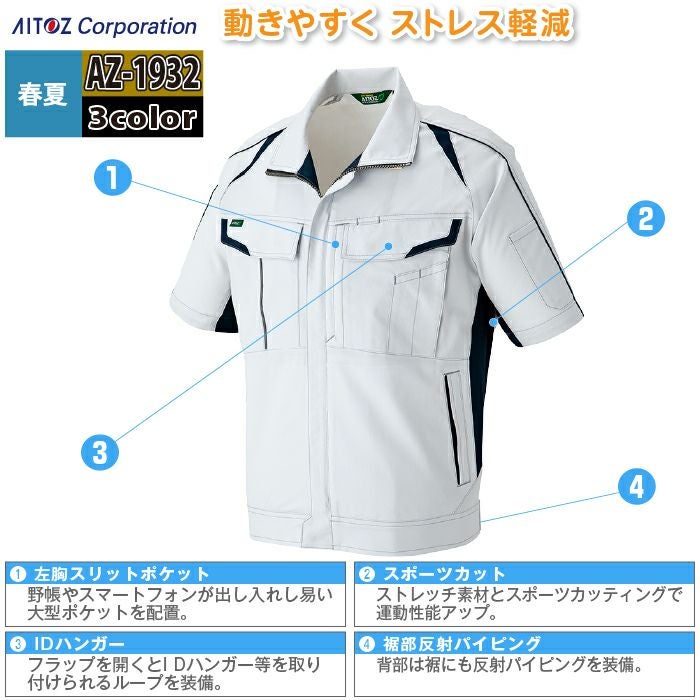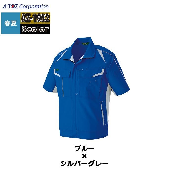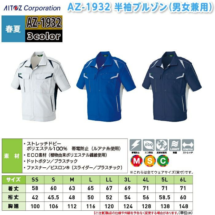 作業服 春夏用 アイトス Aitoz AZ-1932 半袖ブルゾン(男女兼用) SS-LL