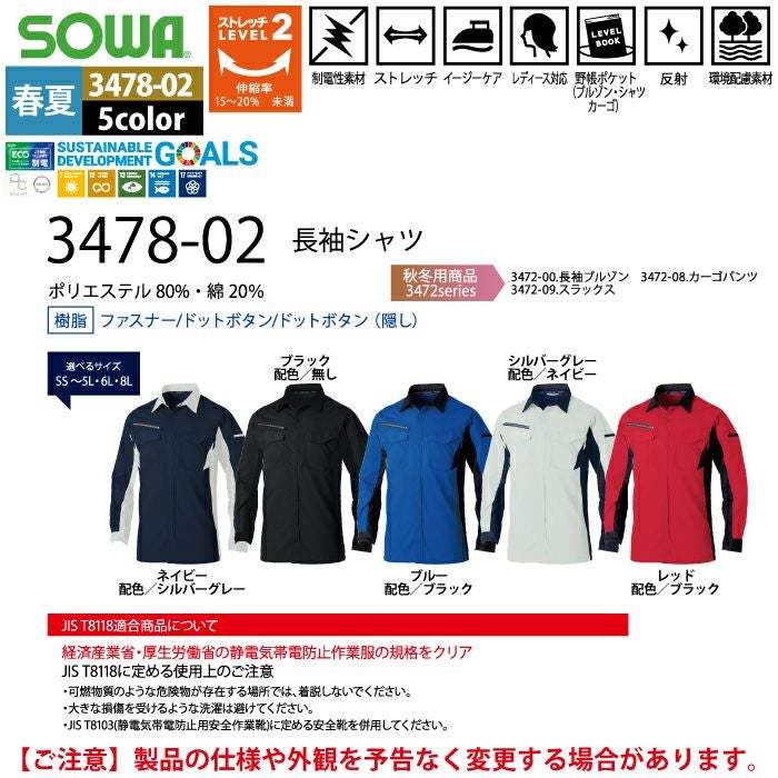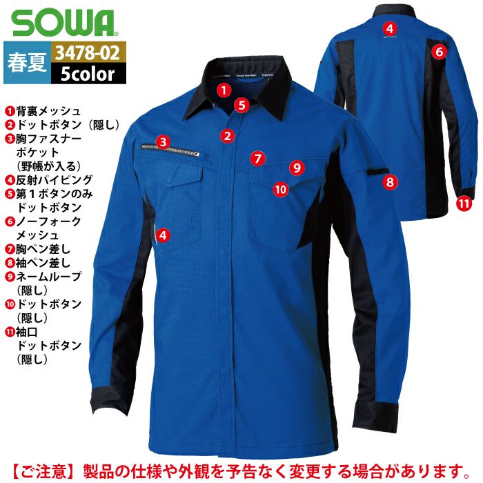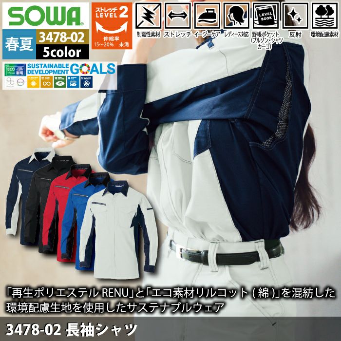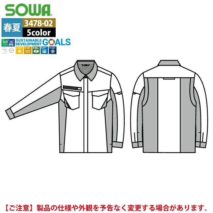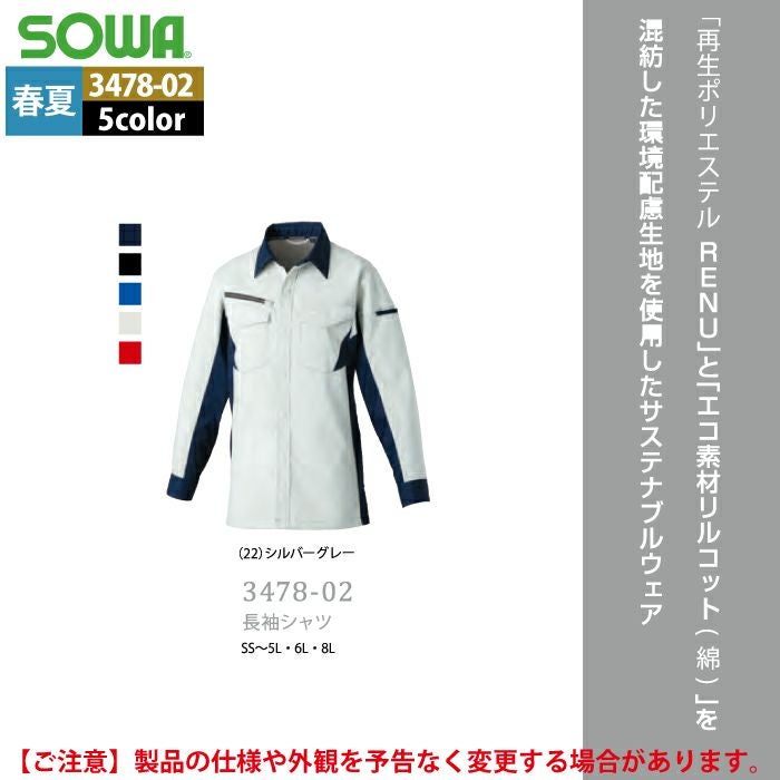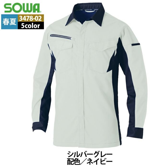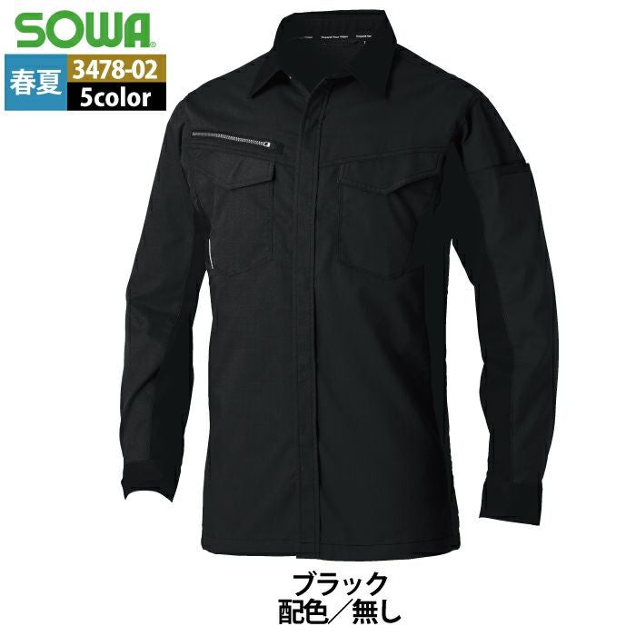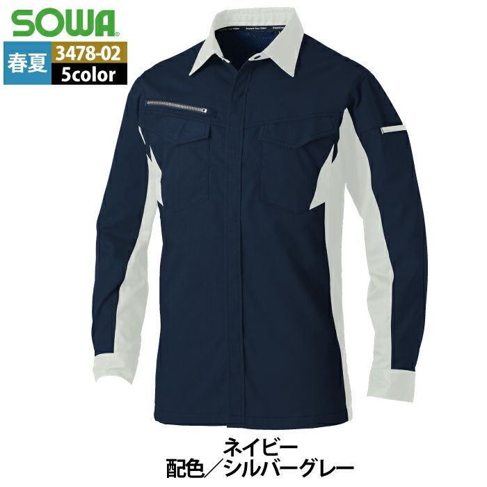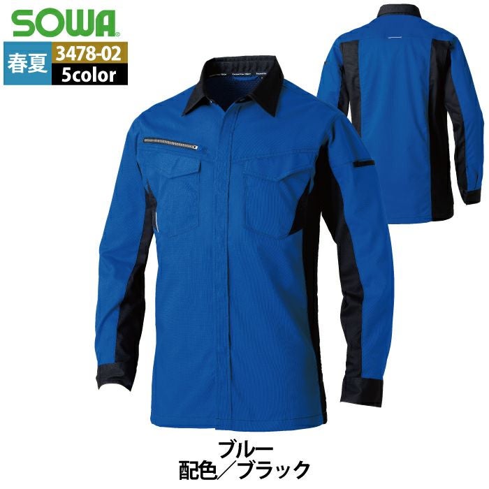 桑和 SOWA 作業服 作業着 作業ズボン 桑和 SOWA 作業服 3478-02 長袖シャツ SS-LL 春夏用