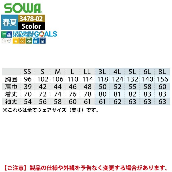 桑和 SOWA 作業服 作業着 作業ズボン 桑和 SOWA 作業服 3478-02 長袖シャツ 6L 春夏用