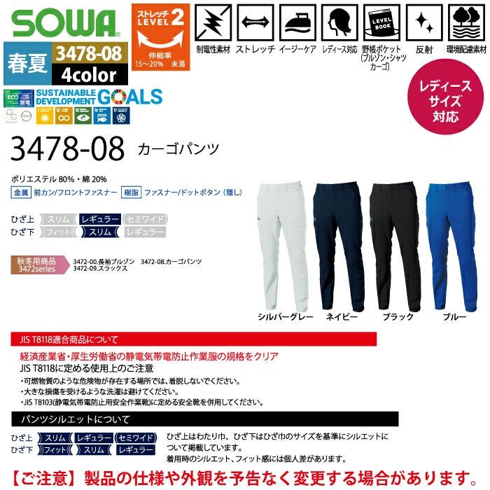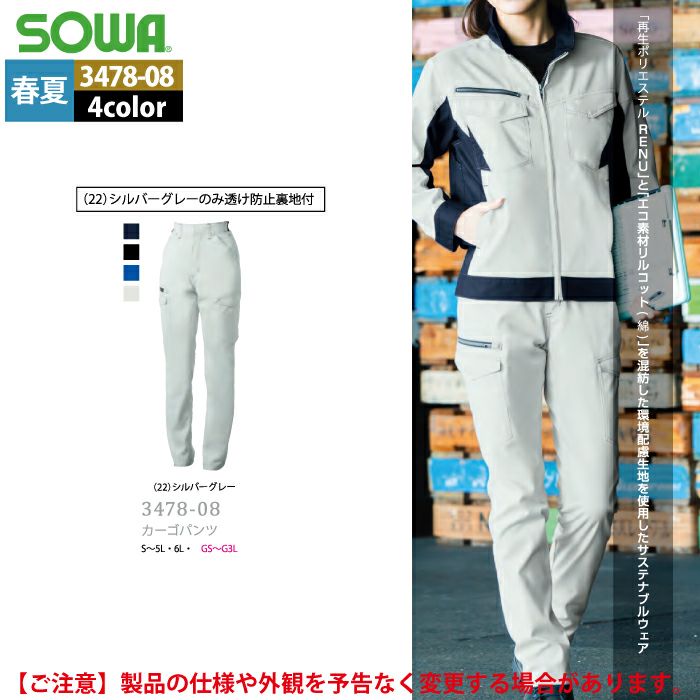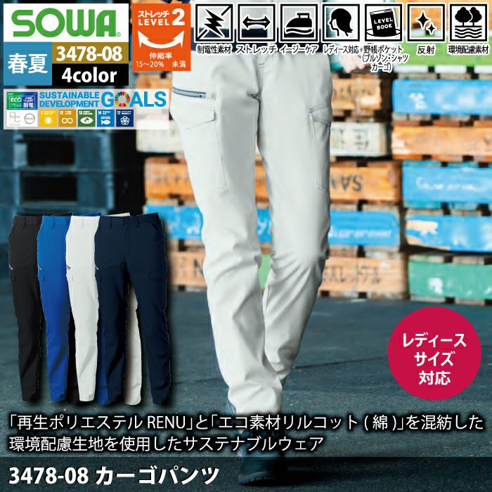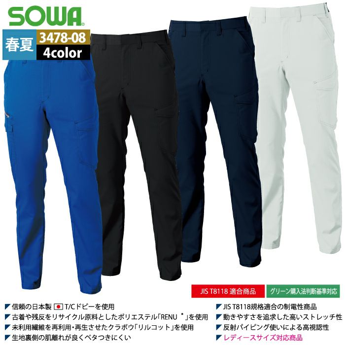 桑和 SOWA 作業服 作業着 作業ズボン 桑和 SOWA 作業服 春夏用 3478-08 カーゴパンツ GS-LL