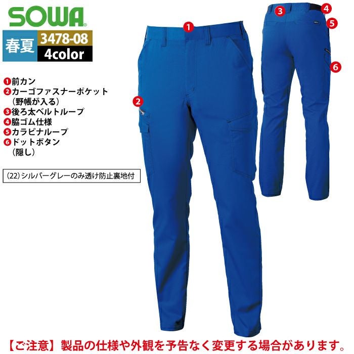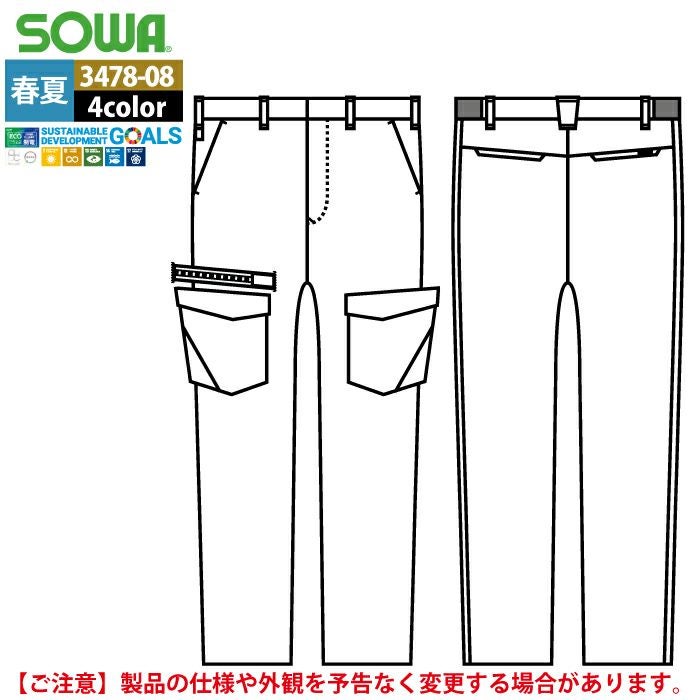 桑和 SOWA 作業服 作業着 作業ズボン 桑和 SOWA 作業服 春夏用 3478-08 カーゴパンツ 6L