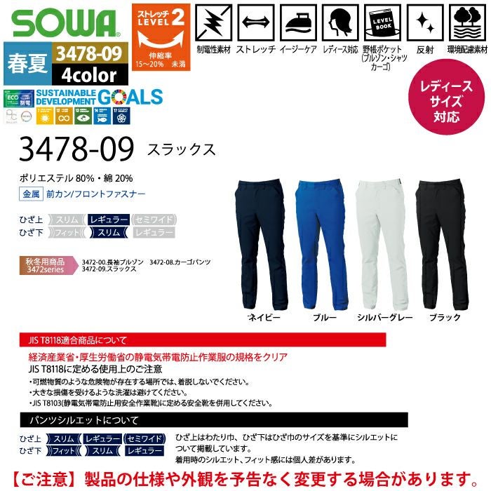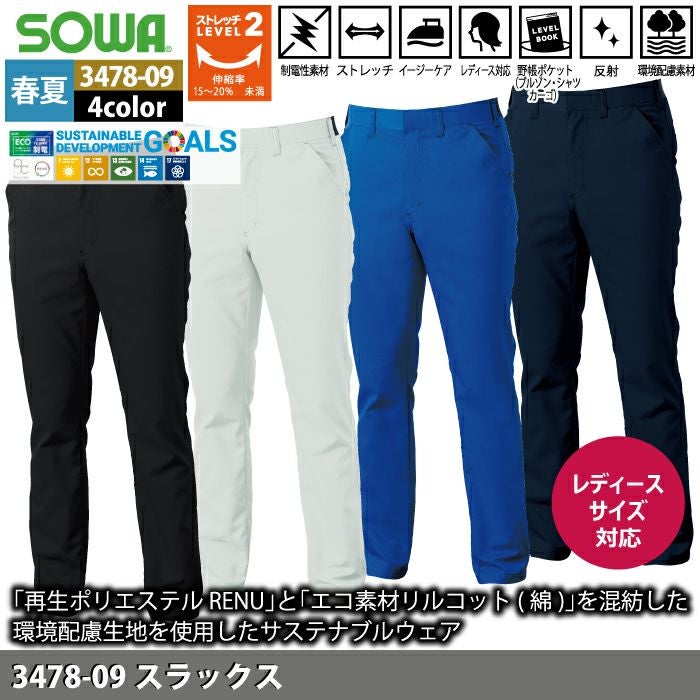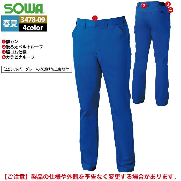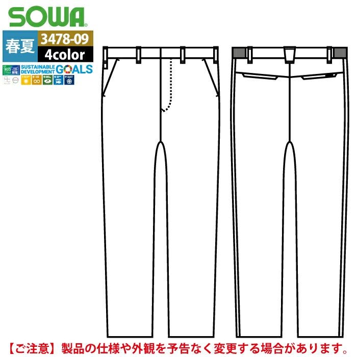 桑和 SOWA 作業服 作業着 作業ズボン 桑和 SOWA 作業服 春夏用 3478-09 スラックス 3L