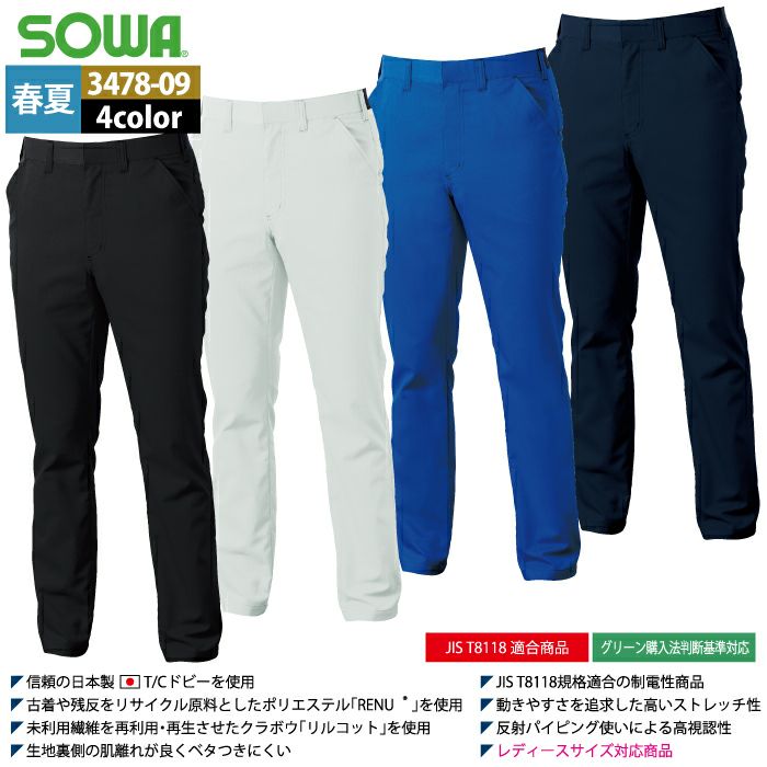 桑和 SOWA 作業服 作業着 作業ズボン 桑和 SOWA 作業服 春夏用 3478-09 スラックス 4L