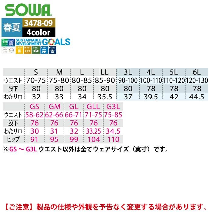 桑和 SOWA 作業服 作業着 作業ズボン 桑和 SOWA 作業服 春夏用 3478-09 スラックス GS-LL