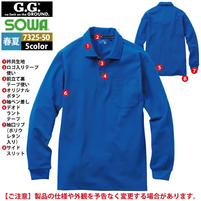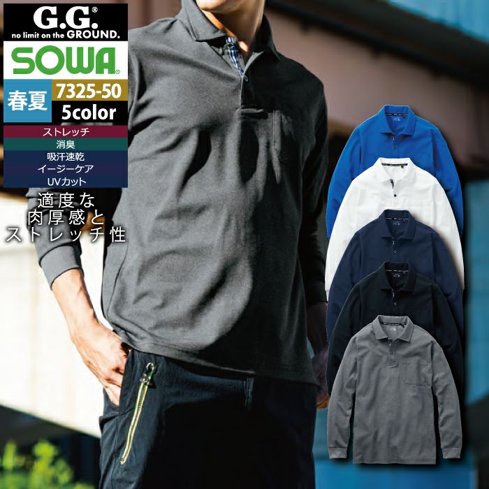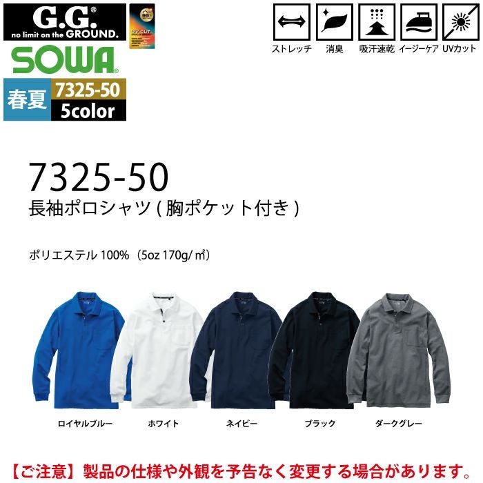 桑和 SOWA 作業服 作業着 作業ズボン 桑和 SOWA 作業服 春夏用 7325-50 長袖ポロシャツ SS-3L