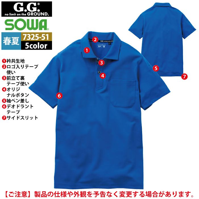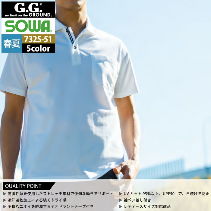 桑和 SOWA 作業服 作業着 作業ズボン 桑和 SOWA 作業服 7325-51 半袖ポロシャツ SS-3L 春夏用