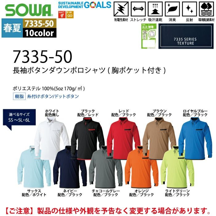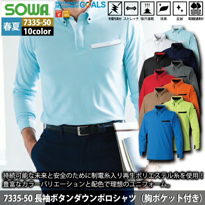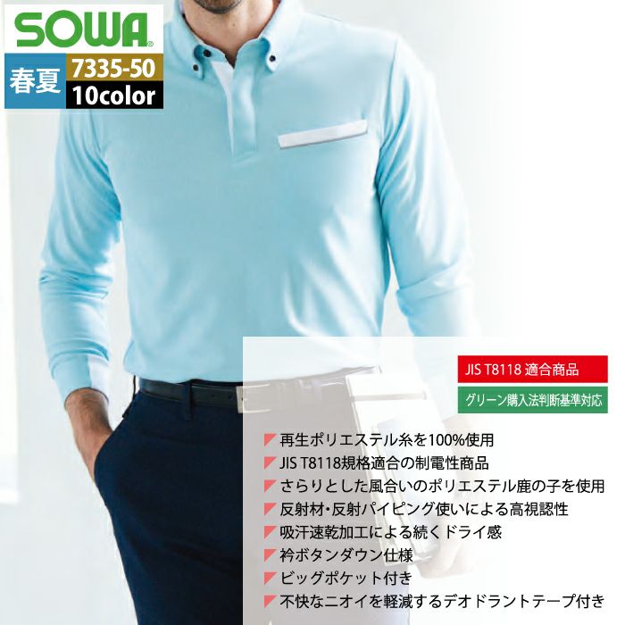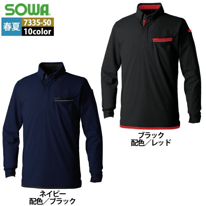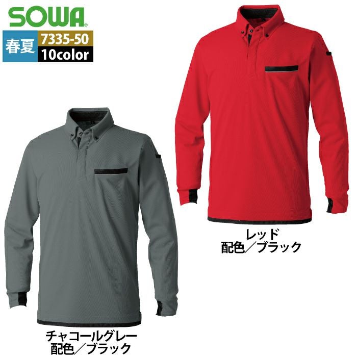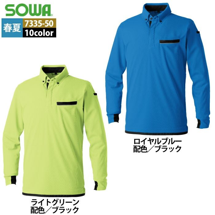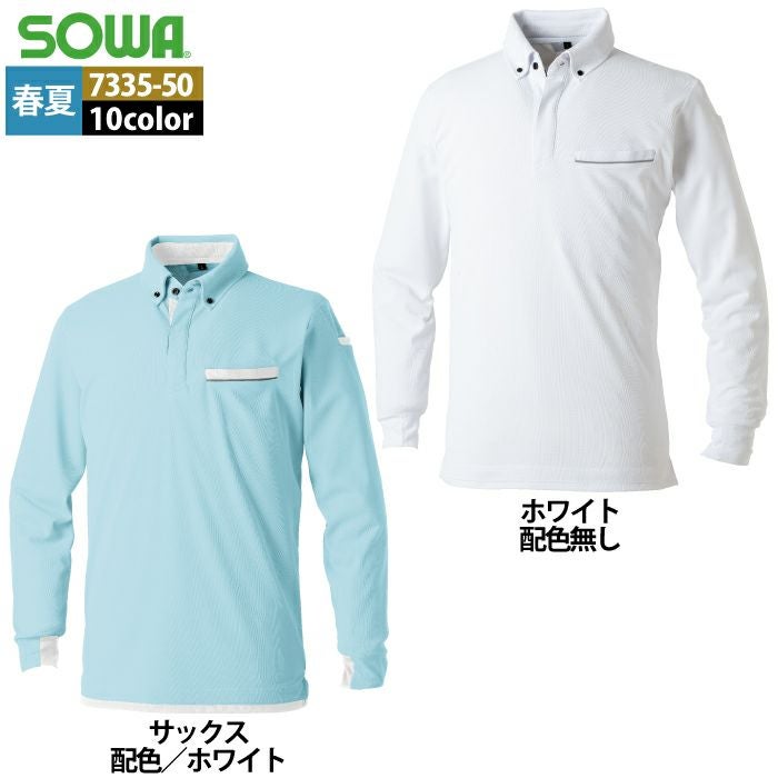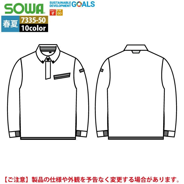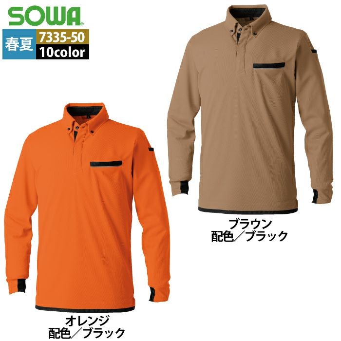 桑和 SOWA 作業服 作業着 作業ズボン 桑和 SOWA 作業服 春夏用 7335-50 長袖ボタンダウンポロシャツ SS-3L