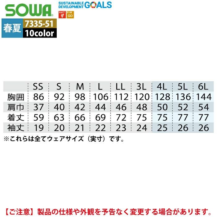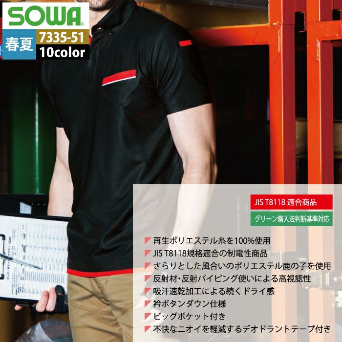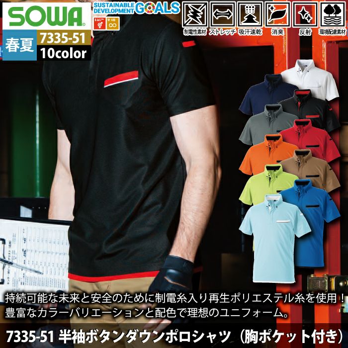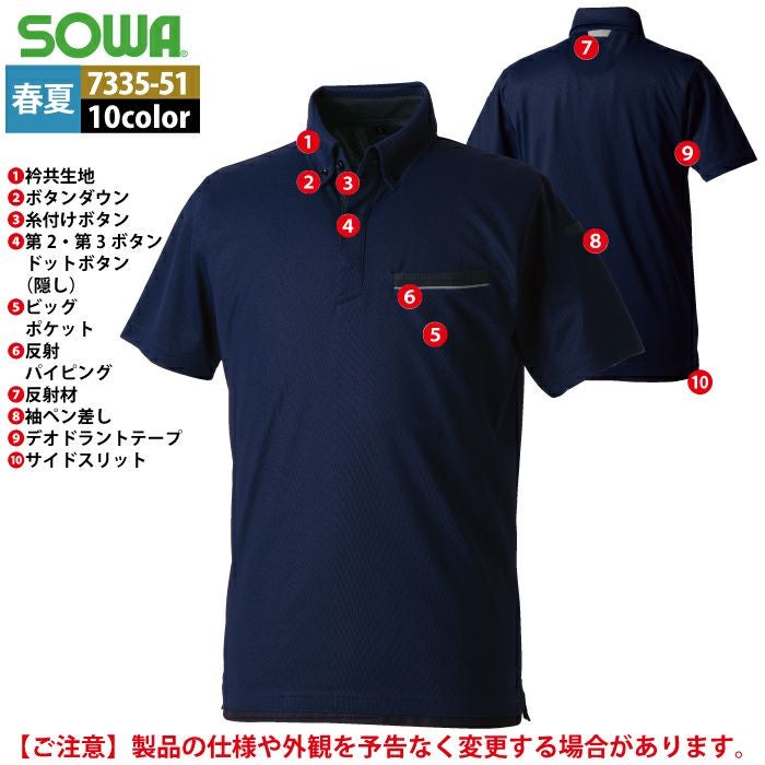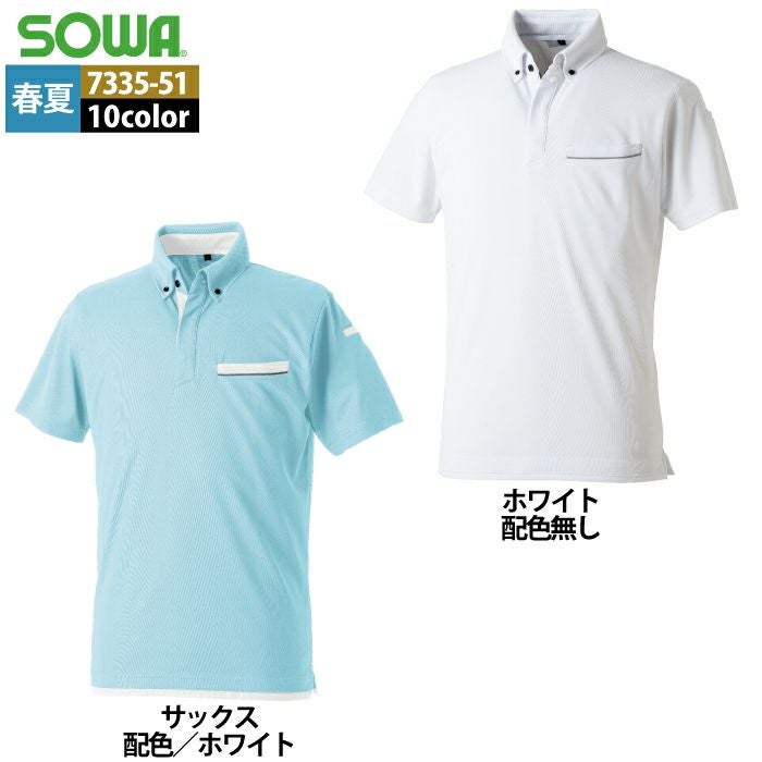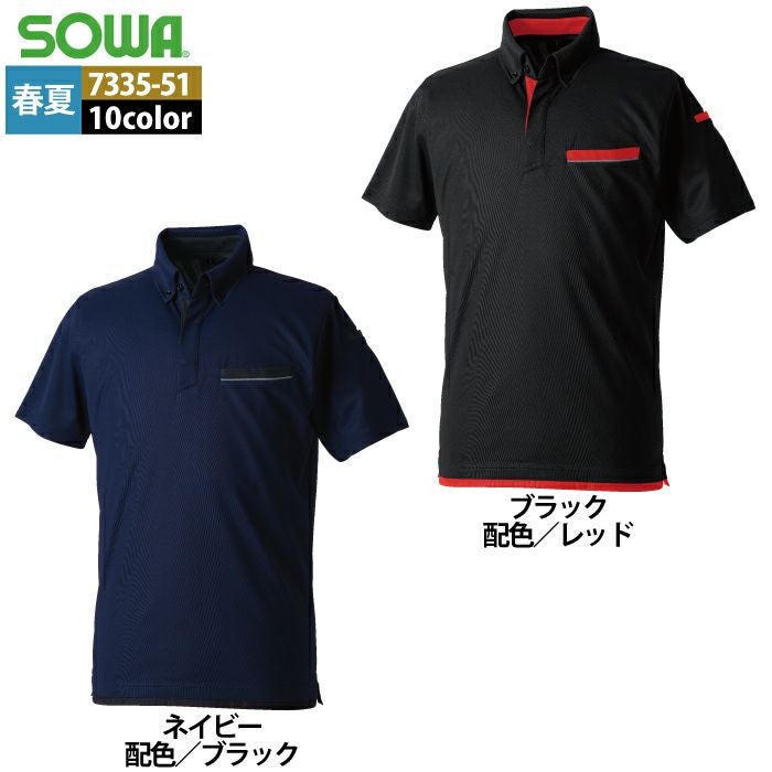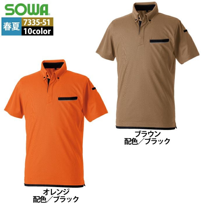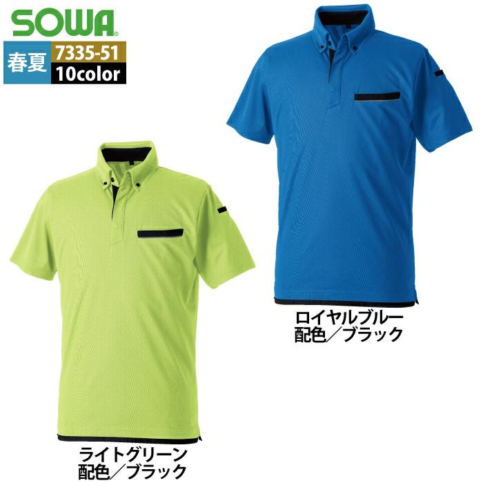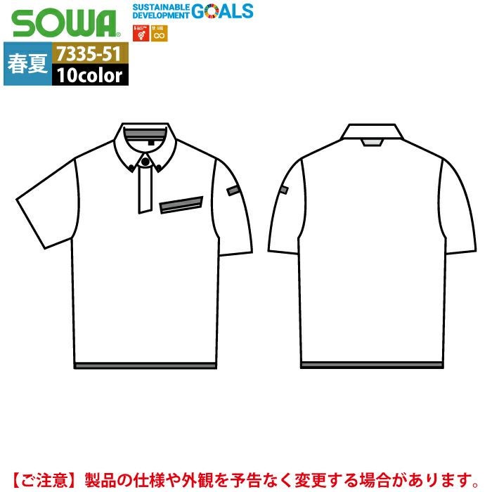 桑和 SOWA 作業服 作業着 作業ズボン 桑和 SOWA 作業服 7335-51 半袖ボタンダウンポロシャツ SS-3L 春夏用