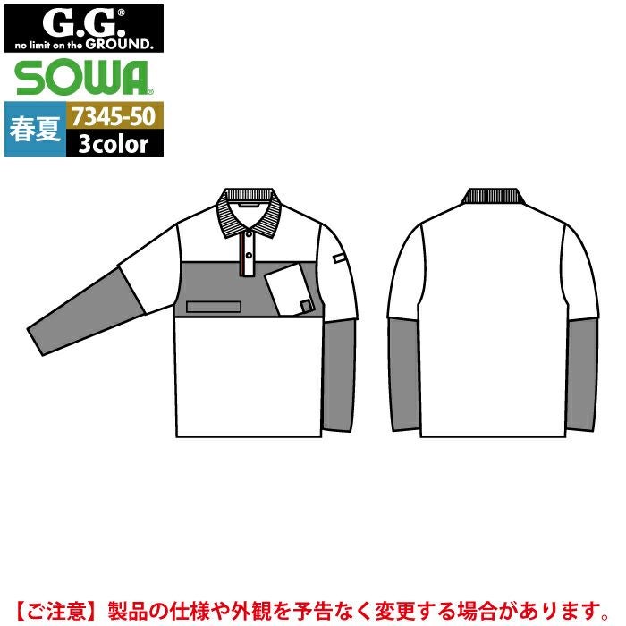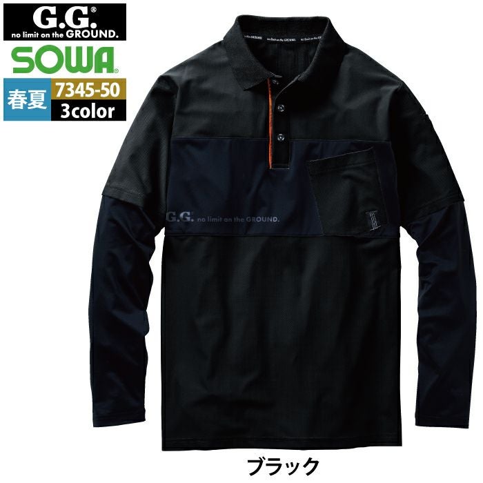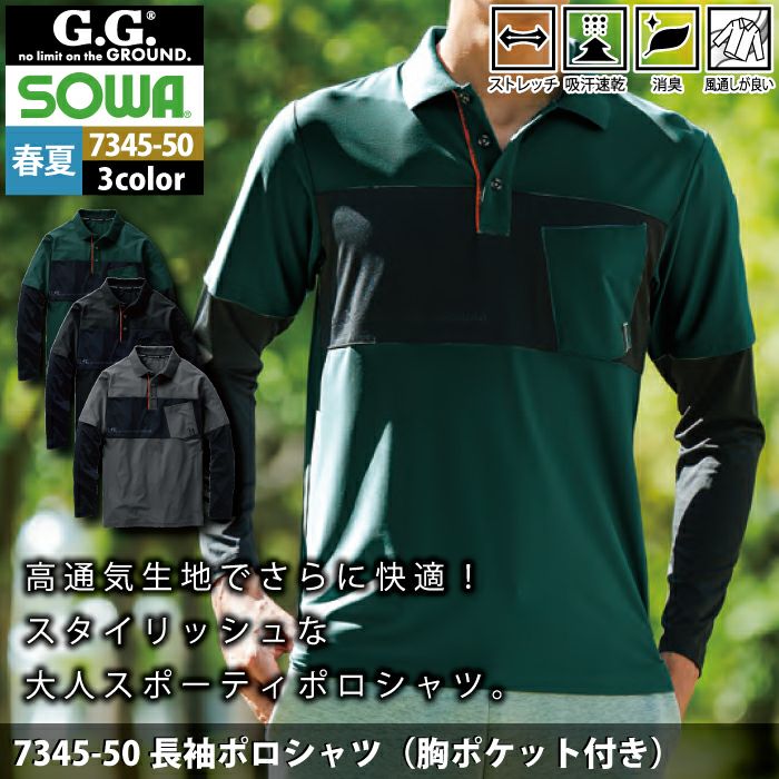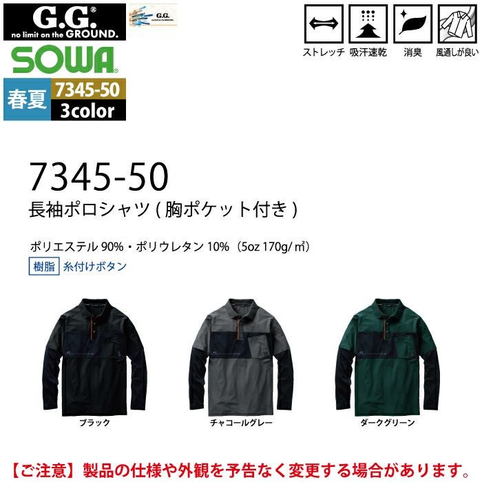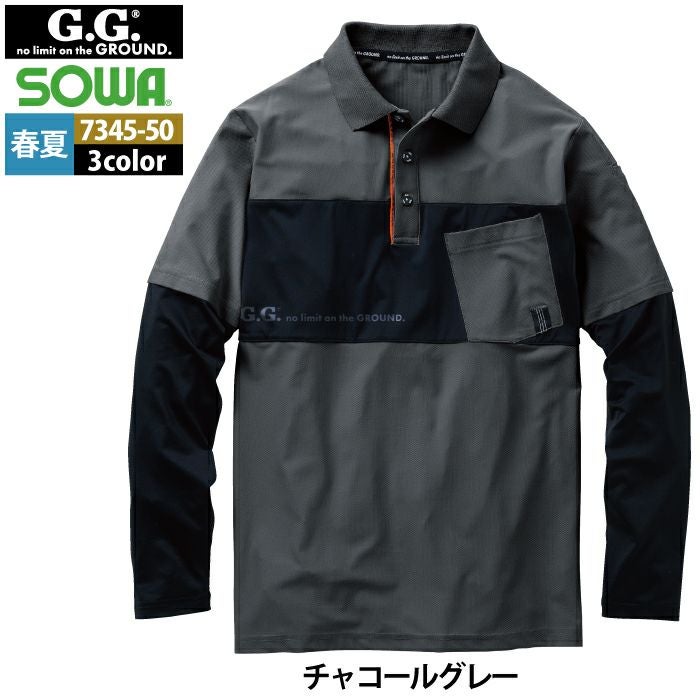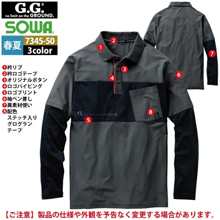 桑和 SOWA 作業服 作業着 作業ズボン 桑和 SOWA 作業服 春夏用 7345-50 長袖ポロシャツ S-3L