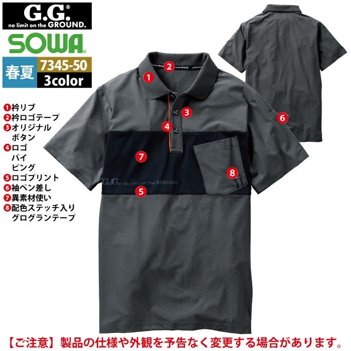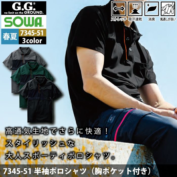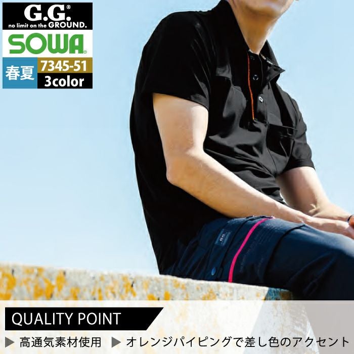 桑和 SOWA 作業服 作業着 作業ズボン 桑和 SOWA 作業服 7345-51 半袖ポロシャツ S-3L 春夏用