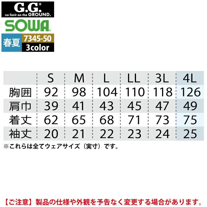 桑和 SOWA 作業服 作業着 作業ズボン 桑和 SOWA 作業服 7345-51 半袖ポロシャツ 4L 春夏用