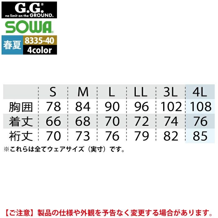 桑和 SOWA 作業服 作業着 作業ズボン 桑和 SOWA 作業服 春夏用 3478-00 長袖ブルゾン 8L