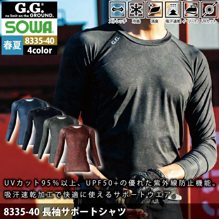 桑和 SOWA 作業服 作業着 作業ズボン 桑和 SOWA 作業服 インナー 春夏用 8335-40 長袖サポートシャツ S-3L