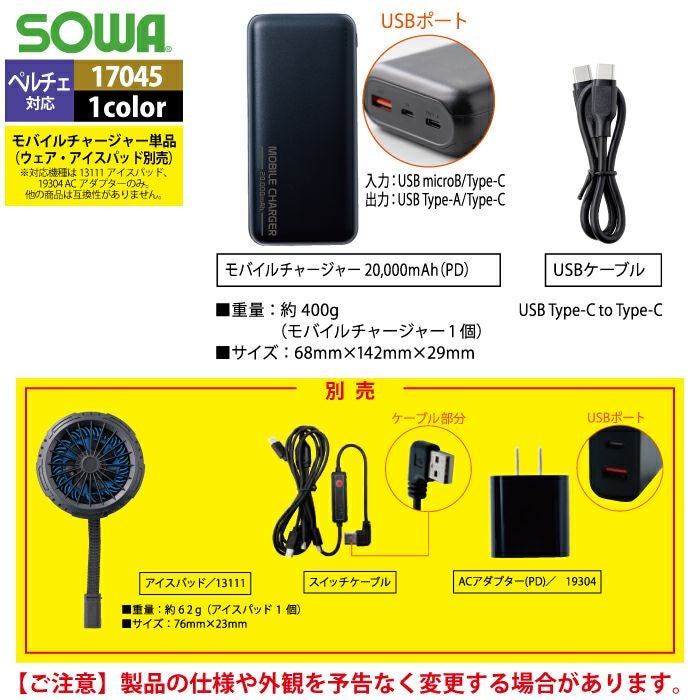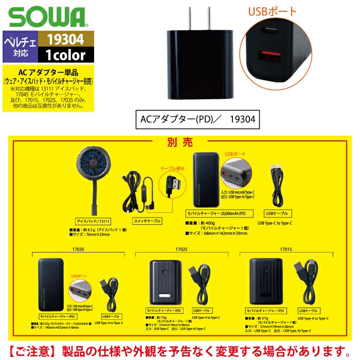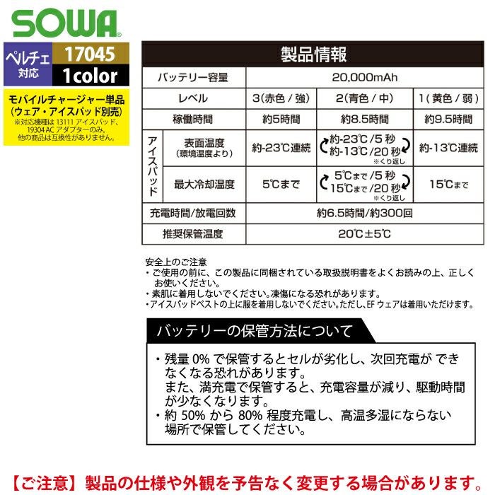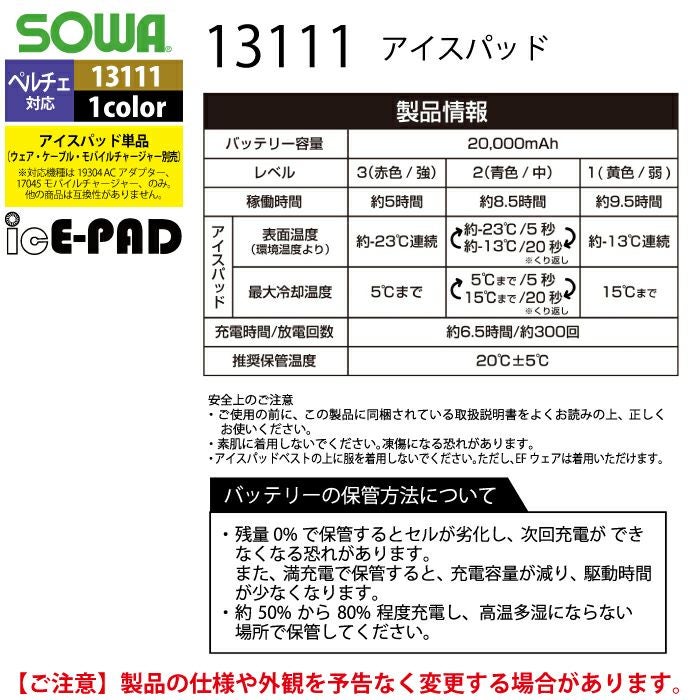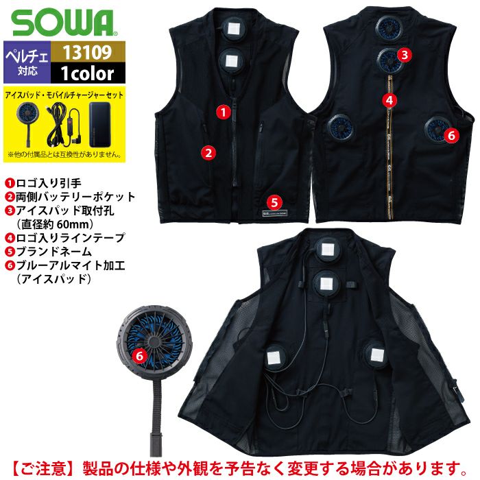 ペルチェ対応ウェア 桑和 作業服 作業着 SOWA 春夏用 13109 アイスパットベストセット S-LL