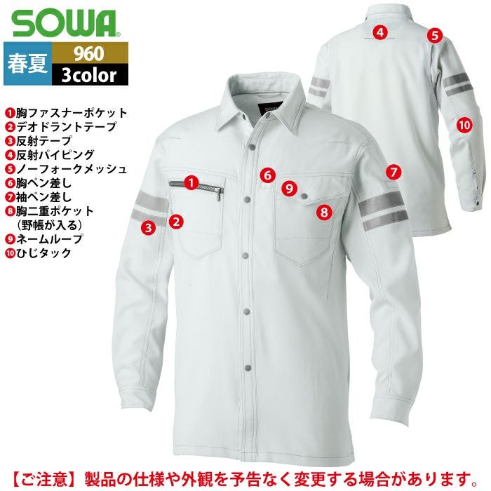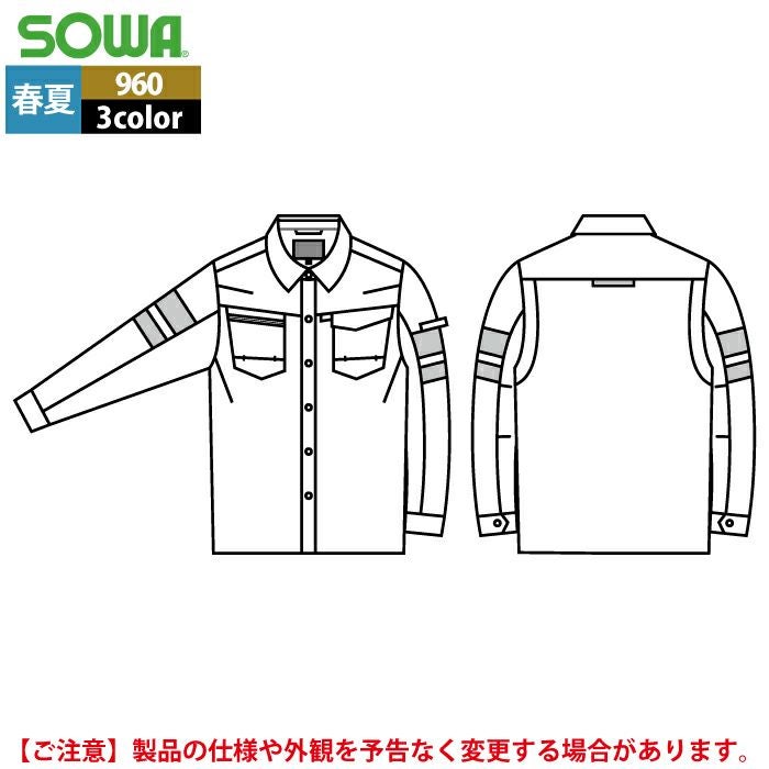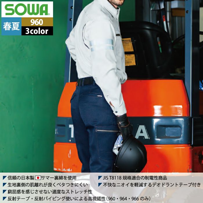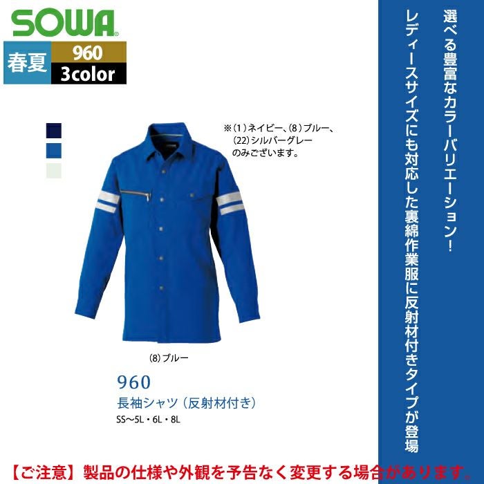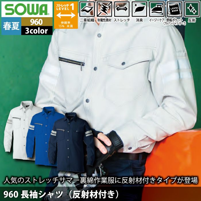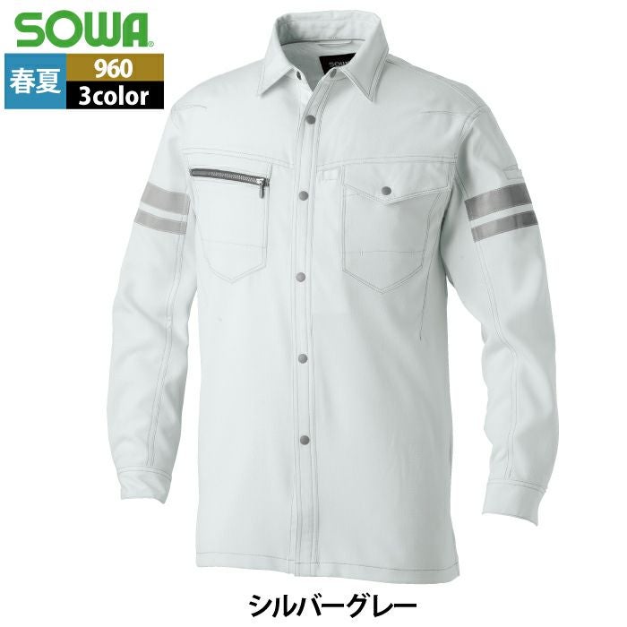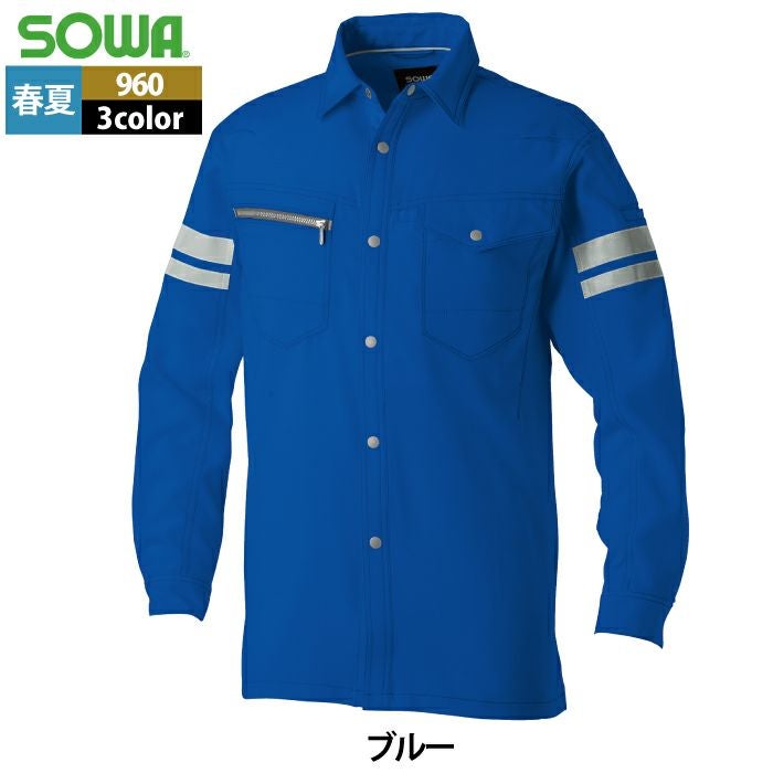 桑和 SOWA 作業服 作業着 作業ズボン 桑和 SOWA 作業服 960 長袖シャツ(反射材付き) SS-LL 春夏用