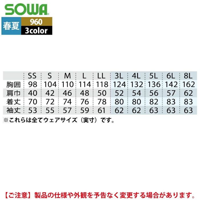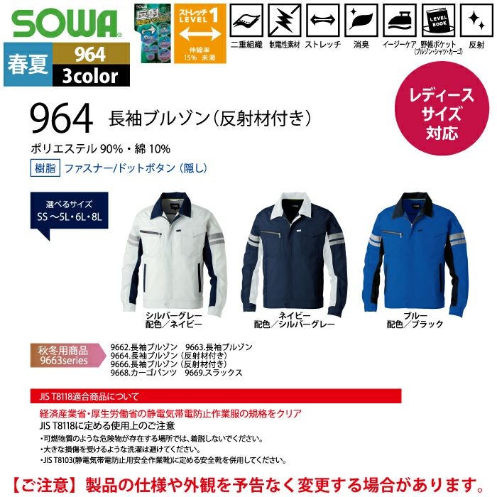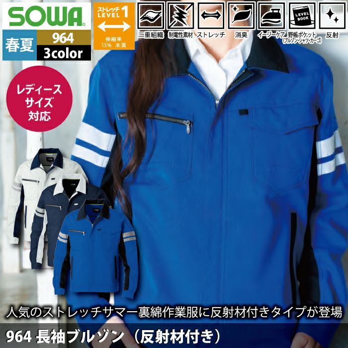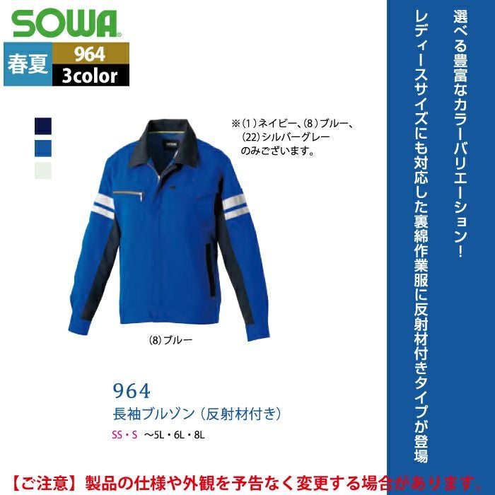 桑和 SOWA 作業服 作業着 作業ズボン 桑和 SOWA 作業服 春夏用 964 長袖ブルゾン(反射材付き) 8L
