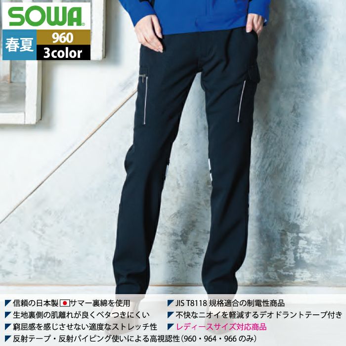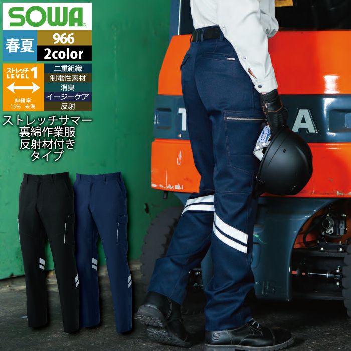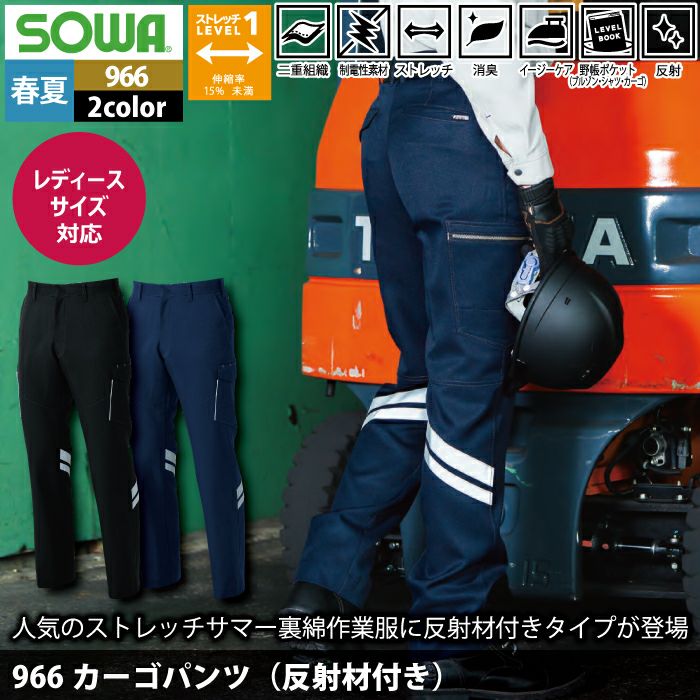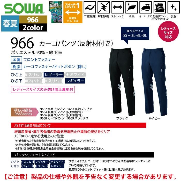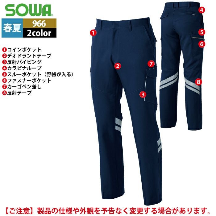 桑和 SOWA 作業服 作業着 作業ズボン 桑和 SOWA 作業服 春夏用 966 カーゴパンツ(反射材付き) 91-100