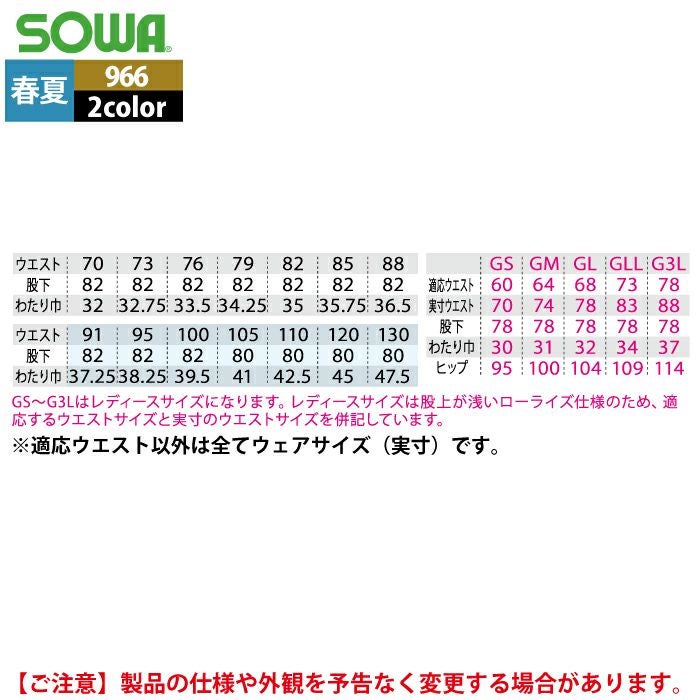桑和 SOWA 作業服 作業着 作業ズボン 桑和 SOWA 作業服 春夏用 966 カーゴパンツ(反射材付き) GS-88