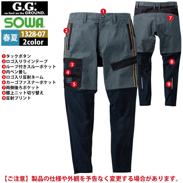 桑和 SOWA 作業服 作業着 作業ズボン 桑和 SOWA 作業服 春夏用 1328-07 レギンスジョガーパンツ S-LL