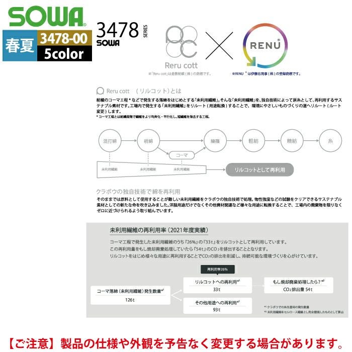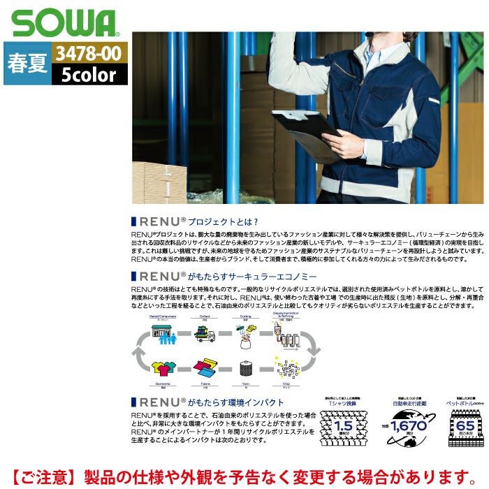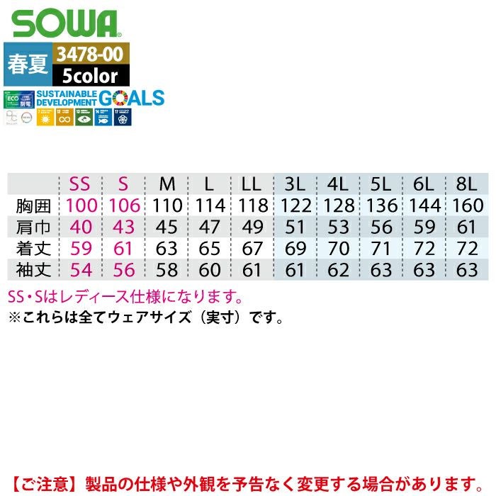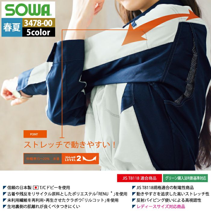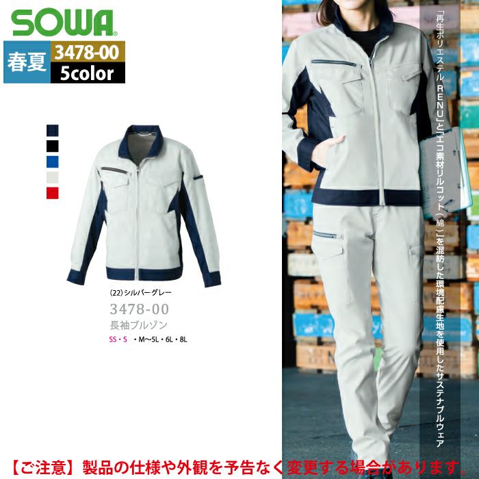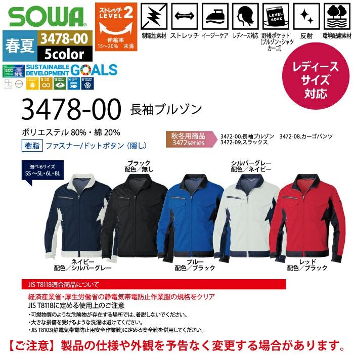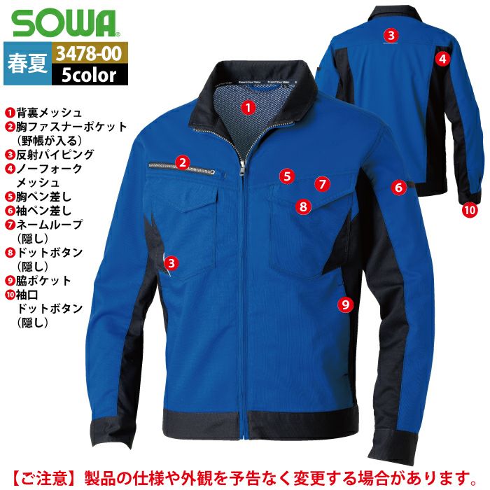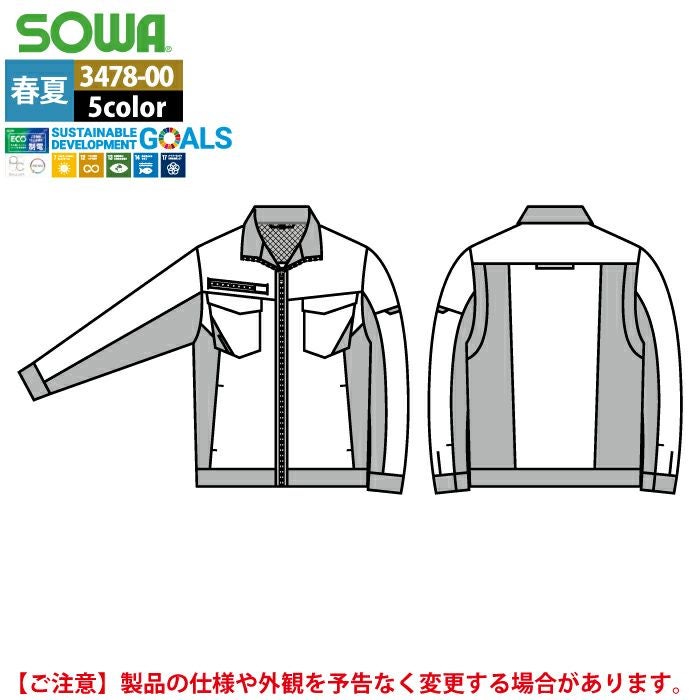 桑和 SOWA 作業服 作業着 作業ズボン 桑和 SOWA 作業服 春夏用 3478-00 長袖ブルゾン SS-LL